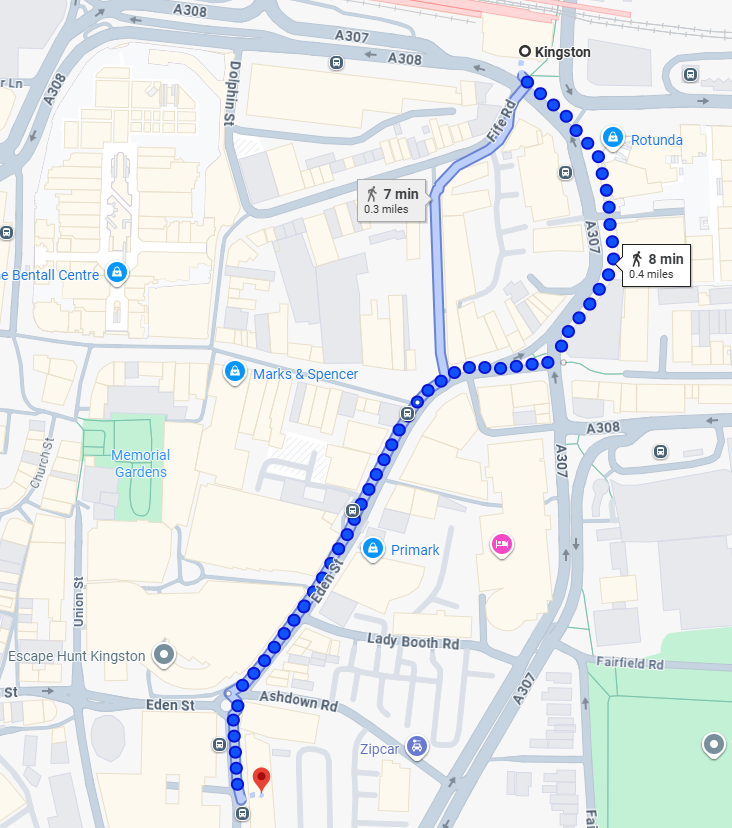 We’re also a minute away from Eden Street bus stop which is serviced by the bus routes: