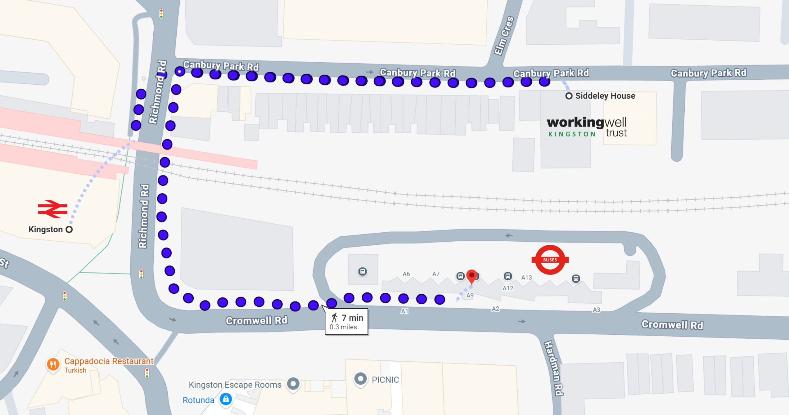 We’re an 2 minute walk from Kingston Train Station and a 5 minute walk from Cromwell Bus Garage.